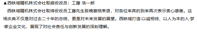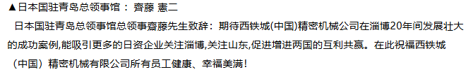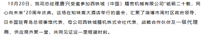 “砥砺二十载 同心向未来” — 我司总经理唐兴受邀参加西铁城(中国)精密机械有限公司20周年庆典。