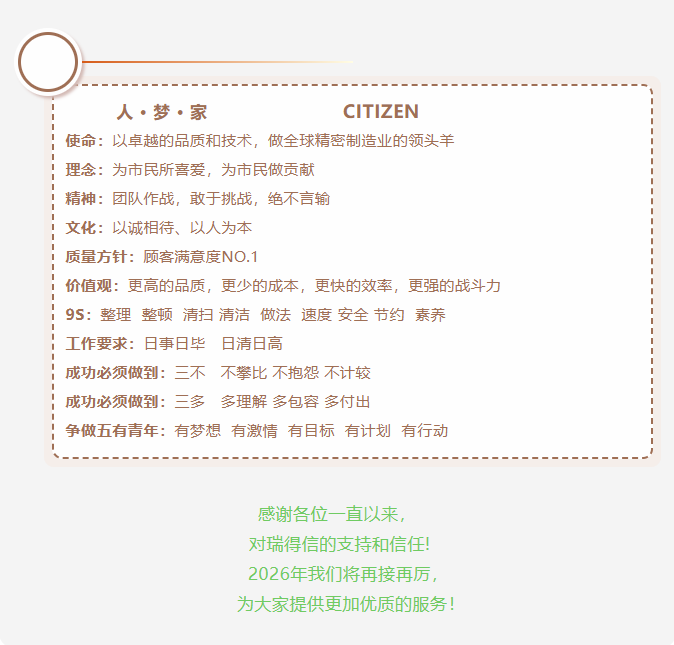 辞旧迎新,共赴新程。西铁城·宫野机床一级代理商【瑞得信】祝大家元旦快乐,马年大吉!